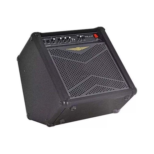 Descrição: - potência 80 wrms - 1 alto falante de 12 - controle de volume master - 1 entrada para baixo passivo p10 - 1 entrada para baixo ativo p10 - controle de ganho de entrada gain - controle de graves bass - controle de médio mid - controle de agudos treble - tecla de boost para reforço de graves low - tecla de boost para reforço de agudos high - saída amplificada para caixa passiva - saída de linha p10 com tecla pré eq/post eqsaída para fones de ouvido modo estudante que automaticamente desligam os alto falantes - tensão de rede120/220v - dimensões altura x largura x profundidade 506x485x430mm - peso 15,9 kg
