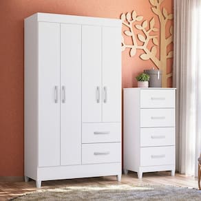 Quarto Infantil Completo Mobi, composto por guarda-roupa com 4 portas e 2 gavetas, e cômoda com 4 gavetas. Ambos possuem design funcional e moderno, ideal para compor o quarto dos pequenos com praticidade e charme. Altura do Conjunto: 181 cm Ambiente Principal: Quarto Infantil codigo_ean: 7900288212443 Complexidade da Montagem: Alta: deve ser montado por um montador especializado Cor: branco / rosa Cor do Produto: Branco / Rosa Escala de Brilho: Fosco Informações Complementares: As Vistas da Cômoda e do Guarda Roupa São flex, possibilitando a escolha entre Branco e Rosa na hora da montagem. Largura do Conjunto: 148 cm Linha ou Coleção: Mobi Manual de Montagem e Instalação: https://cdn2.madeiramadeira.com.br/atributo/albatroz-moveis/3131105-675-1755016697171.pdf Marca: Albatroz Móveis Material Principal: MDP Medida de Cada Item: Guarda-Roupas: A 181cm x L 98cm x P 47cm Cômoda: A 105cm x L 50cm x P 40cm modular: Não Necessita Montagem: Sim O Conjunto Contém: Cômoda/Guarda-Roupa Origem do Produto: Nacional Peso: 62.4 Porta Janelada: Não Possui Portas: Sim Quantidade de Portas: 04 Recomendações de Uso, Manutenção e Limpeza: Limpar com flanela ou pano macio seco, não utilizar produtos abrasivos, desengordurantes, álcool ou solvente. Não expor o produto diretamente á luz solar e á umidade. Sistema de Montagem: Parafusos, cavilhas e minifix Suporta Até (kg): 37