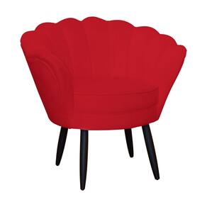 Combo Poltrona Decorativa E Puff Para Recepção Pétala Suede Vermelho - LM DECOR