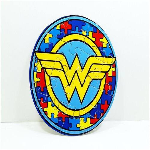 Combo 2 Quebra-cabeças heróis para Autistascomo opção de presente bem diferenciado. O kit acompanha 1 Quebra-cabeça oval de 51 peças e 1 Quebra-cabeças redondo de 12 peças, como atividade cognitiva para montar junto com seus filhos, este jogo é muito bom para a estimulação cognitiva da memória.