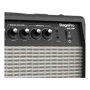 Combo stagepro g25 dsp 25w para guitarra Descrição O combo stagepro g25 dsp é uma excelente opção para guitarristas que buscam versatilidade, qualidade sonora e praticidade em um único equipamento. Com potência de 25w e um alto-falante de 8 polegadas, ele oferece volume ideal para estudos, ensaios e pequenas apresentações, além de garantir um som limpo e encorpado. Um dos grandes destaques desse amplificador são suas 8 simulações de amplificadores clássicos, que permitem ao músico explorar diferentes timbres, desde sons limpos até drives mais pesados, atendendo diversos estilos musicais. Além disso, o stagepro g25 dsp conta com efeitos integrados como chorus, flanger, vibrato, delay, reverb e a combinação delay+reverb, proporcionando ainda mais possibilidades de criação sonora. A interface de gravação integrada permite conectar o amplificador diretamente a dispositivos móveis ou computadores, facilitando a produção de músicas e gravações caseiras com qualidade. Para maior praticidade, oferece entrada p10 para guitarra, entrada auxiliar p2 para playback, saída p2 estéreo para fones de ouvido e controles intuitivos de gain, volume, treble, bass e power, garantindo uma experiência completa tanto para estudo quanto para performances. Especificações técnicas: - potência: 25w - alto-falante: 8 polegadas 20,32 cm - simulações: 8 simulações de amplificadores clássicos - efeitos: chorus, flanger, vibrato, delay, reverb e delay+reverb - interface de gravação: compatível com mobile e computador - entradas: 1 entrada p10 para guitarra e 1 entrada auxiliar p2 - saída: 1 saída p2 estéreo para fones de ouvido - controles: gain, volume, treble, bass e power - bivolt Itens inclusos - 1 amplificador combo stagepro g25 dsp - manual de instruções : 3 meses pelo fabricante Origem: china Imagens meramente ilustrativas.