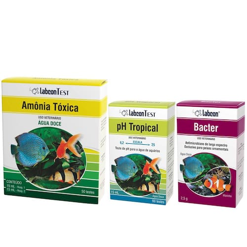 Combo contendo os seguintes itens para manutenção de aquário: - 1 Labcon Teste Amônia para aquário Água Doce - 1 Bacter Alcon Labcon Peixes Bacter - 1 Teste de PH para água de aquários Ph Tropical Labcon Test Alcon - identifica ph ideal para água do aquário