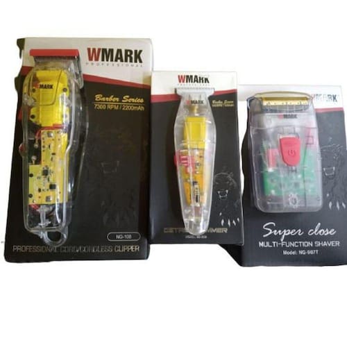 O Combo possui 1 maquina de corte da Wmark 1 Máquina de acabamento da Wmark 1 Shaver da Wmark. Um combo que te proporciona o melhor corte e designer que qualquer outra maquina te proporcionaria. Wmark é a sensação do momento. Acompanhado com todos os pentes de corte e acabamento. Marca: W Mark