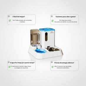 Características: • Capacidade aproximada: 2 litros • Sistema de abastecimento por gravidade • Parte inferior com apoio antiderrapante • Tigelas removíveis para facilitar a higienização • Ideal para uso diário em ambientes internos