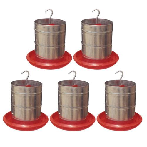 Conhecido como comedouro suspenso, por sitiantes em aviários, tubo galvanizado, base prato plástico vermelho. Características: Volume 3kg de ração, Possui regulagem na travessa superior em conjunto com a haste, O prato com 26 x 26 Cm é injetado com material 100% puro virgem PP H 103 com 0,02% "UV" contra raios ultravioletas, Altura Total 19 Cm, Fácil acesso das aves ao alimento, Peso: 320g, Marca: Zatti Conteúdo da embalagem: 5 Comedouros com capacidade para 3kg de ração cada. Produto isento de registro Anvisa/Inmetro. Marca: Não Informado Ean: 7898334238120