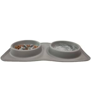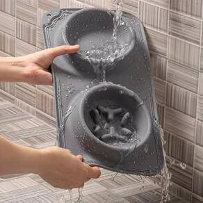 Alimentação e hidratação no mesmo acessório: Um pote ideal para ração, com design anatômico e relevos anti-engasgo, que controlam a velocidade da alimentação, prevenindo refluxo, vômitos e engasgos. O outro, perfeito para manter a água sempre disponível e fresca.