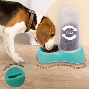 Bebedouro e comedouro: O Flex Gourmet pode ser os dois. Ao ser abastecido com água ou ração, ele garante a alimentação ou hidratação contínua do pet. Basta inverter a posição do reservatório para transformar o Flex Gourmet em comedouro ou bebedouro.