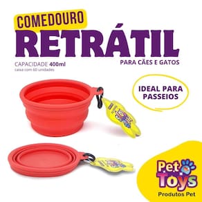 Comedouro e Bebedouro Retrátil para Cães e Gatos 400 ml - Pet ToysLeve praticidade e cuidado com seu pet para onde for O Comedouro e Bebedouro Retrátil da Pet Toys é ideal para passeios, viagens e até o dia a dia. Com capacidade de 400 ml, ele pode ser tanto para água quanto para ração, sendo perfeito para cães e gatos de todos os portes. Fabricado em silicone atóxico e resistente, é fácil de higienizar, dobrável e leve para transportar. Seu design retrátil permite que você economize espaço ao guardá-lo na bolsa, mochila ou no carro. Uma solução prática, higiênica e durável para manter seu melhor amigo sempre bem alimentado e hidratado, em qualquer lugar. Características:capacidade: 400 ml Material: Silicone atóxico e durável Função 2 em 1: pode ser como comedouro ou bebedouro Design retrátil e portátil Fácil de limpar e armazenar Ideal para passeios, viagens e uso doméstico