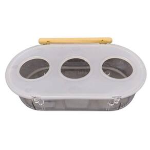 Comedouro de plástico tamanho grande com poleiro de 10mm de madeira.