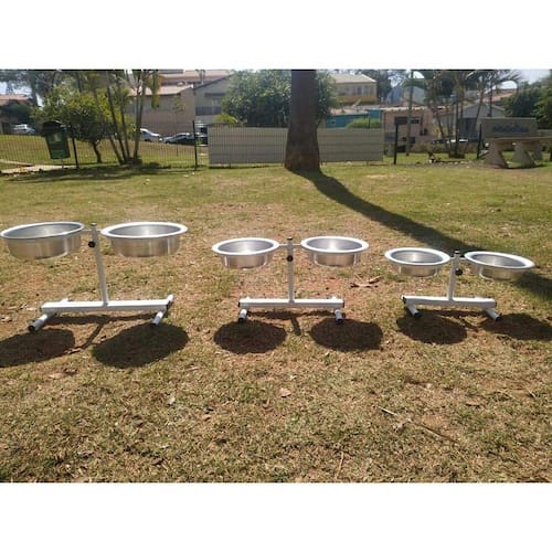 Os comedouros de ajuste regulável são de extrema importância para o seu PET. Vai muito além da estética do local onde o seu animal se alimenta. Hoje já é mais que comprovado por especialistas e médicos veterinários que o comedouro de ajuste regulável só traz vantagem para a saúde do seu PET, seja ele gato ou cachorro deve alimentar-se em comedouros que se ajustam a altura e tamanho do animal por vários motivos que vamos citar abaixo: 1)Ergonomia Animal 2)Evita Dilatação crônica. 3)Evita Dilatação Progressiva do esôfago 4)Evita Impedimento da passagem da comida para estomago 5)Evita artrite nos cães mais idosos. 6)Diminui as dores causadas pela Artrite em Cães já sintomáticos. 7)Evita Dores muscular. 8)Melhora a digestão, pois o cão ou gato tem mais facilidade em comer. 9)Evita Dores na Coluna. 10)Evita tensão muscular. 11)Evita problemas articulares. 12)Auxilia na higiene do local onde o PET se alimenta. 13)Inibe a aproximação de formigas e insetos rastejantes que podem picar o seu PET. 14)Extremamente recomendado para cães ou gatos que já passaram por cirurgia. 15)Extremamente indicados para cachorros ou gatos que não possuem uma perna. Comedouro tamanho Pequeno: Altura Mínima: 17 cm Altura Máxima: 23 cm Tamanho da Boca da vasilha: 15 cm Tamanho da vasilha: 19 cm Quantidade de litros que cabe em cada vasilha: 750 ml (2 unidades de vasilhas inclusas) Quantidade de Quilo Gramas aproximado: 800 Gr Profundidade da Vasilha: 6 cm Comprimento da base do Comedouro: 29 cm Largura da base do comedouro: 18 cm Material do Pote: Alumínio Material do suporte: Ferro pintado com tinta que evita ferrugem e corrosão.