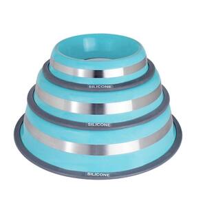 Comedouro Inox com Anel Silicone GermanHart Prestige Azul G 950ml