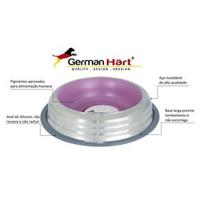 O comedouro em inox da Germanhart é super resistente e durável! O anel de silicone não resseca e não racha! A base larga previne tombamentos e não escorrega. Além disso, os pigmentos são seguros!