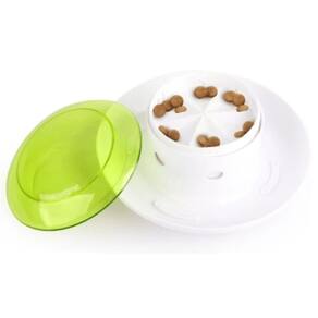 Tipo: Comedouro Interativo Material: Polipropileno PP Livre de BPA e PVC Cores: Branco e Verde Compatibilidade: Adequado para cães e gatos de todas as raças e tamanhos.