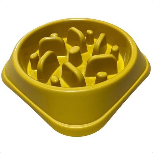 cor: amarelo capacidade: 450ml; tamanho aproximado: 19x4cm; peso aproximado: 155g; comedouro bebedouro lento para pets que comem rápido ajuda a evitar refluxos, engasgos e má digestão traz mais ,pois deixa a alimentação mais lenta design minimalista e moderno. Formato ideal para alimentação plástico pp Marca: Fluffie