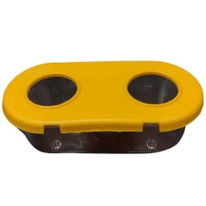 Tampa com 2 furos feita de plástico um pouco mais resistente.