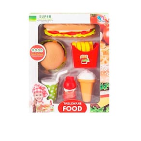 Kit para a criançada se divertir com as comidinhas realistas. Comidas realistas com ótima qualidade que irão impressionar toda a criançada. Contém no kit um hambúrguer, um sanduiche, batata frita, bebida, ketchup e sorvete.