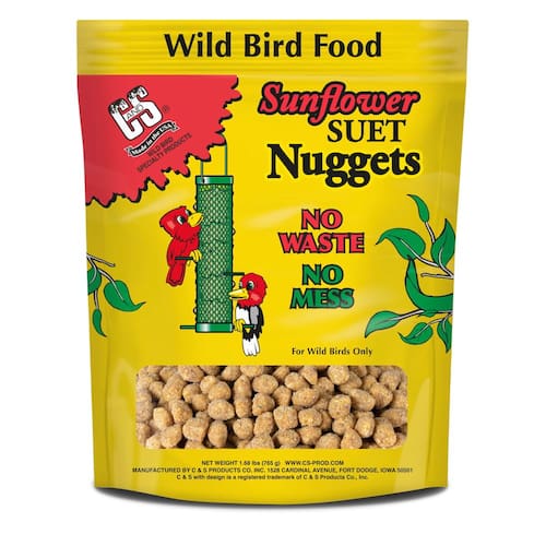 - Econômico e fácil de usar em comparação com as sementes tradicionais. As pepitas de sebo de girassol C&S combinadas com um alimentador de pepitas oferecem um ótimo valor para o cliente de alimentação de pássaros selvagens de hoje.