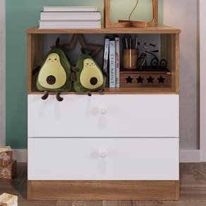 Comoda 02 Gav E Nichos LA005 Comm é versátil, prática e elegante. Estrutura em MDP de 15 mm, e excelente acabamento em Finish Foil (Fosco). Composta por 02 gavetas com corrediças metálicas, 01 prateleira, nicho, puxadores plásticos e acompanha sapatas. Gavetas suportam até 3 kg cada, a prateleira e o nicho suportam 5 kg distribuídos. É ideal para o quarto do seu bebê, facilitando e otimizando o espaço e o aconchego para ao ambiente. Este móvel chegará em sua casa separado em 01 volume.