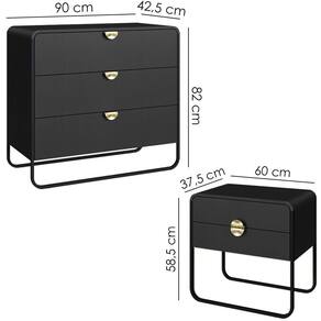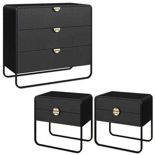Conjunto de Cômoda e 2 Mesas de Cabeceira com design orgânico e contemporâneo, ideal para compor o quarto com funcionalidade e estilo. Estrutura em MDP 15 mm, cantoneiras em MDF e acabamento em pintura BP. Conta com 7 gavetas com corrediças telescópicas, puxadores em poliestireno (meia-lua), pés em metal e sapatas plásticas que protegem o piso contra riscos. Produto entregue em 03 volumes.