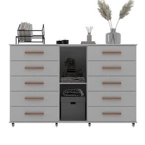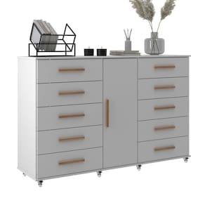 Cômoda Monterrey possui 10 gavetas com Trilho Telescópico e 1 porta, sendo ideal para acondicionar e organizar objetos, indicado para compor ambientes em seu quarto ou closet. Possui puxador MDF na cor Nogal Manchester . Produto em MDP e acabamento em Pintura UV . Produto Montado: Sim Acabamento da Gaveta: Pintura UV Acabamento da Porta: Pintura UV Acabamento da Prateleira: Pintura UV Ambiente Principal: Quarto codigo_ean: 7909903472743 Complexidade da Montagem: Média: pode ser montado por mais de uma pessoa e/ou necessite de maior conhecimento para montagem Cor: Branco Cor do Produto: Branco Cor Interna: Branco Escala de Brilho: Brilhante Escala de Brilho da Gaveta: Brilhante Escala de Brilho da Porta: Brilhante Escala de Brilho da Prateleira: Brilhante Gaveta com Chave: Não Itens Inclusos: 1 Cômoda, Kit Ferragens e Manual de Montagem Linha ou Coleção: Monterrey Manual de Montagem e Instalação: https://product-hub-prd.madeiramadeira.com.br/877233/documents/ae6b8610-68c7-48dd-b306-9607fdbff3261636813manual5447branco.pdf Material da Gaveta: MDP Material da Porta: MDP Material da Prateleira: MDP Material do Fundo: MDF Material do Puxador da Gaveta: MDF Material do Puxador da Porta: MDF Material Principal: MDP Necessita Montagem: Sim Origem do Produto: Nacional Peso: 65,45 kg Peso Máximo por Gaveta: 5 kg Peso Máximo por Prateleira: 5 kg Possui Espelho: Não Possui Nichos: Não Possui Pés: Não Possui Portas: Sim Possui Prateleiras: Sim Quantidade de Gavetas: 10 Gavetas Quantidade de Prateleiras: 01 Prateleira Recomendações de Uso, Manutenção e Limpeza: Para limpeza utilize pano macio, seco ou ligeiramente umedecido com água. Não utilize sapólios, polidores e ou produtos que contenham carga abrasiva, para evitar danos ao produto. Evitar que o móvel fique exposto a luz solar direta, ou em ambientes de umidade e calor excessivo. Não colocar carga excessiva de peso nas gavetas e prateleiras, para evitar acidentes ou danos ao produto. O móvel deverá ficar nivelado, desta forma, as gavetas e as portas terão o bom funcionamento, evite arrastá-los, isso pode danificar o móvel. Sapatas Niveladoras: Não Sistema de Montagem: Cavilhas, parafusos e cola Suporta Até (kg): 50 kg Tipo de Corrediça da Gaveta: Metálica Telescópica Tipo de Dobradiça/Corrediça da Porta: Aço Tipo de Porta: Bater Tipo de Puxador da Gaveta: Externo Tipo de Puxador da Porta: Externo Ean: 7909903472743
