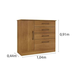 A Cômoda Chicago é um produto fabricado com material MDP, conta com 4 gavetas, corrediças telescópicas, sapateira lateral com prateleira, puxadores em PVC, modelo perfil H, excelente acabamento em filete e pintura UV. Acabamento da Gaveta: Pintura Acabamento da Porta: Pintura Acabamento da Prateleira: Pintura Ambiente Principal: Quarto Complexidade da Montagem: Baixa: pode ser montado por uma pessoa sozinha Cor: Cinamomo Cor do Produto: Cinamomo Escala de Brilho: Semi-Brilho Escala de Brilho da Gaveta: Semi-Brilho Escala de Brilho da Porta: Semi-Brilho Escala de Brilho da Prateleira: Semi-Brilho Gaveta com Chave: Não Informações Complementares: Gaveta com chave possui divisórias de gaveta biju para joias. Itens Inclusos: 1 Cômoda, Kit Ferragens e Manual de Montagem. Linha ou Coleção: Chicago Manual de Montagem e Instalação: https://cdn2.madeiramadeira.com.br/atributo/tcil-moveis/615878-manual-de-montagem-c-moda-4-gav-chicago.pdf Material da Gaveta: MDP Material da Porta: MDP Material da Prateleira: MDP Material do Fundo: MDP Material do Puxador da Gaveta: PVC Material do Puxador da Porta: PVC Material Principal: MDP Necessita Montagem: Sim Origem do Produto: Nacional Peso: 34,56 kg Peso Máximo por Gaveta: 5 kg Peso Máximo por Prateleira: 5 kg Possui Espelho: Não Possui Nichos: Não Possui Pés: Não Possui Portas: 01 Possui Prateleiras: 01 Recomendações de Uso, Manutenção e Limpeza: Não colocar o produto em lugar úmido, não arrastar, limpar somente com pano macio e seco, não expor o produto a incidência de luz solar, não colocar peso superior ao indicado. Sapatas Niveladoras: Não Sistema de Montagem: Parafuso, cavilha e pregos. Suporta Até (kg): 30 kg Tipo de Corrediça da Gaveta: Metálica Telescópica Tipo de Dobradiça/Corrediça da Porta: Metálica Tipo de Porta: Bater Tipo de Puxador da Gaveta: Externo Tipo de Puxador da Porta: Externo