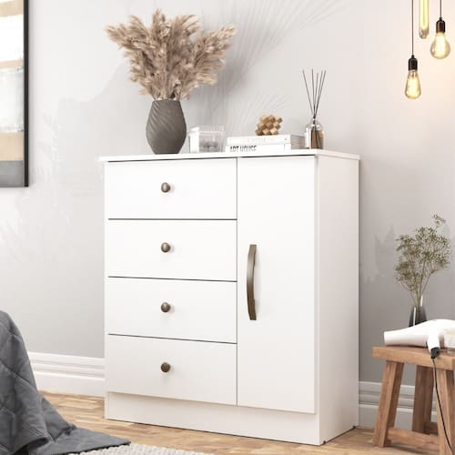 Para compor seu quarto e garantir a organização a Cômoda Lisboa da Móveis Sul é uma opção perfeita. Fabricada em MDP possui 1 porta e 4 gavetas para auxiliar na organização de seu quarto.