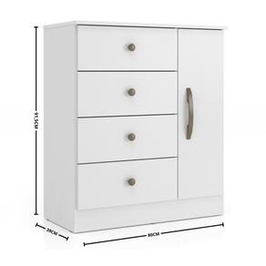 Características: Estrutura MDP 1 Porta 4 Gavetas Tampo em MDP de 15mm Puxadores em plástico
