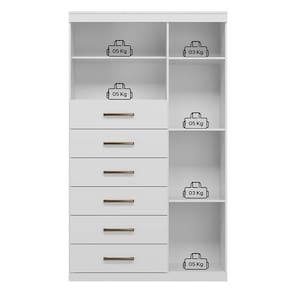 Comoda 1 porta 6 gavetas Marabá Branco: A Multi Cômoda Marabá é um coringa para a casa: pode ficar na cozinha ou quarto e guardar muitos itens graças às seis gavetas, além de suas prateleiras e uma porta com compartimentos.