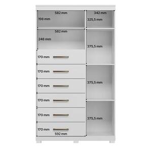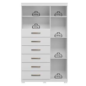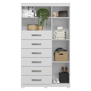 Comoda 1 porta 6 gavetas Marabá com espelho e pés Branco Brilho - Santos Andirá