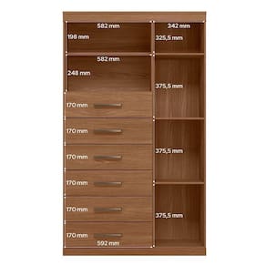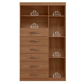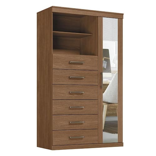 Comoda 1 porta 6 gavetas Marabá com espelho Jatobá Acetinado - Santos Andirá