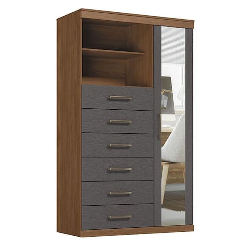 Comoda 1 porta 6 gavetas Marabá com espelho Jatobá Grafite Acetinado - Santos Andirá