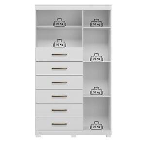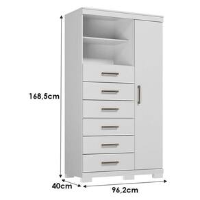 Comoda 1 porta 6 gavetas Marabá com pés Branco Brilho - Santos Andirá