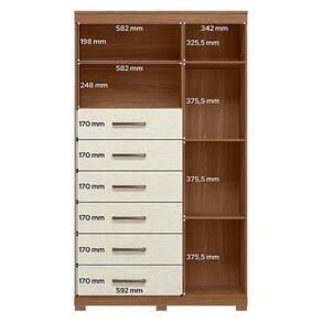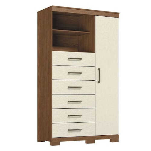 Comoda 1 porta 6 gavetas Marabá com pés Jatobá Areia Acetinado - Santos Andirá