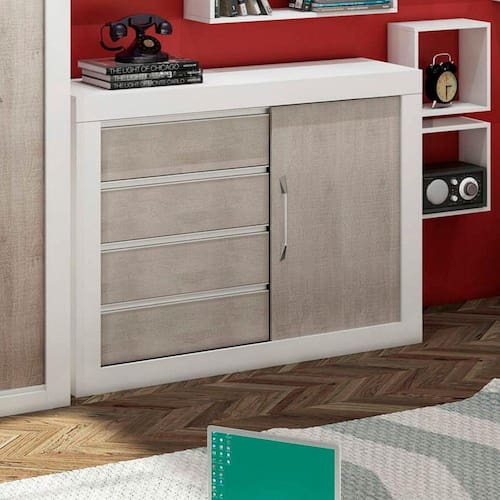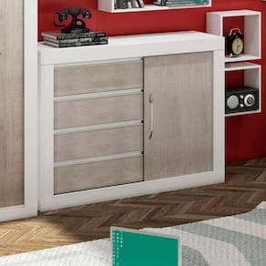 Cômoda 1 Porta de Correr 4 Gavetas Móveis Percasa Branco/Narita - Bege