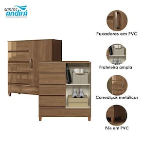 Comoda 1 portas 4 gavetas Fit Jequitibá Acetinado - Santos Andirá