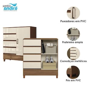 Comoda 1 portas 4 gavetas Fit Jequitibá Off Acetinado - Santos Andirá