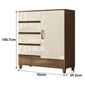 - Possui uma porta com prateleira onde você pode acomodar objetos como sapatos, bolsas, caixas, livros, decoração, etc.
