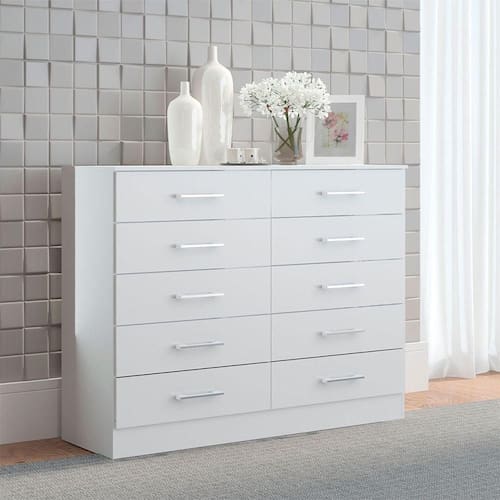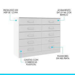 Itens Inclusos: 01 Comoda 10 Gavetas 117x92x40Cm Quarto MDP