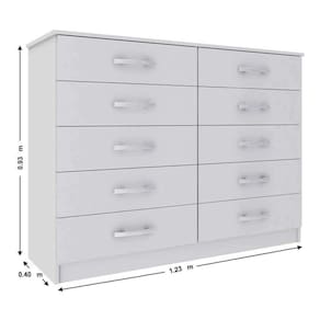 Cômoda 10 Gavetas Austin Evidência MóveisA cômoda é aquele móvel curinga que agrega muito ao espaço e à decoração do seu ambiente. Uma dica boa para levar esta facilidade para a sua casa é apostando no modelo Austin! Com 10 gavetas, ela tem compartimentos suficiente para acomodar as suas roupas com organização, além de um tampo amplo para você colocar objetos decorativos e dar um upgrade no lar-style do seu quarto. E por falar em visual, esta peça também é excelente na hora de personalizar o dormitório já que carrega cor e design fáceis de combinar. Daí é só caprichar na escolha do restante do mobiliário e criar um cantinho de descanso em ordem e cheio de bom gosto.Medidas:Altura : 92 cmLargura: 120cmProfundidade: 43cm– Estrutura em MDP 15 mm– Corrediça Plástica– Puxadores Plástico Cromado– Acabamento em Lasca Fosco– Entregue em: 1 Volume– Limpar com pano secoInformações importantes:Os objetos que ambientam as fotos não acompanham o produto.Não nos responsabilizamos pela montagem/instalação dos produtos.Montagens, desmontagens e instalações são responsabilidades do cliente.Indicamos que contrate uma empresa de montagem ou um montador de sua confiança.Além disso, favor verificar se os pés e acessórios estão dentro do forro inferior do produto.Em suma, todas as informações divulgadas sobre o produto são de responsabilidade do Fabricante.Fique atento, nossas cores podem sofrer alterações dependendo do seu monitor ou tela do seu celular.