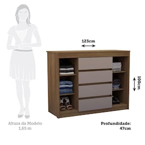 Cômoda 2 Pts 4 Gav Com Sapateira 123cm Uni Luciane Móveis Avelã Pf/cinammon Pf