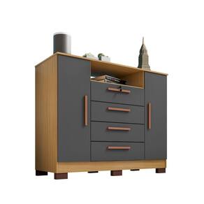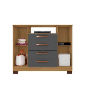 Internamente, a cômoda apresenta um acabamento de alta qualidade com pintura de última geração, garantindo um ambiente interno mais agradável e espaçoso. Com duas prateleiras suportando até 5kg cada e quatro gavetas com capacidade de 3kg cada, ela oferece amplo espaço de armazenamento para roupas e objetos pessoais.