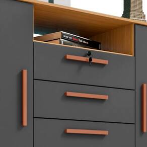 Destacando-se pela praticidade, a cômoda possui seis puxadores cromados e dobradiças metálicas que garantem durabilidade e facilidade no uso diário. Além disso, o produto é ecologicamente correto, produzido com materiais provenientes de reflorestamento e conta com um sistema de montagem simples, facilitando sua instalação.