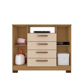 Internamente, a cômoda apresenta um acabamento de alta qualidade com pintura de última geração, garantindo um ambiente interno mais agradável e espaçoso. Com duas prateleiras suportando até 5kg cada e quatro gavetas com capacidade de 3kg cada, ela oferece amplo espaço de armazenamento para roupas e objetos pessoais.