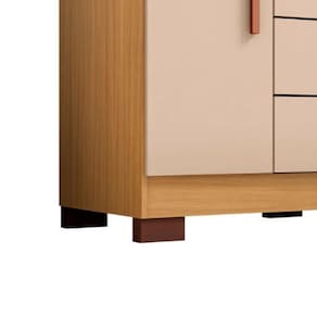 Com seis pés plásticos na cor tabaco, a cômoda Bath é uma excelente escolha para quem busca funcionalidade, estilo e durabilidade em um móvel para o quarto.