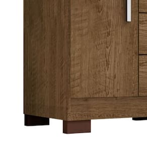 Com seis pés plásticos na cor tabaco, a cômoda Bath é uma excelente escolha para quem busca funcionalidade, estilo e durabilidade em um móvel para o quarto.