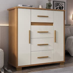 A Cômoda Kyra une elegância contemporânea a uma funcionalidade inteligente, proporcionando não apenas estilo, mas também uma organização prática. Com dimensões precisas, materiais duráveis e um acabamento refinado, destaca-se pelo equilíbrio sublime entre sofisticação e eficiência. Seus pés, na cor do produto, e puxadores em MDF, adicionam um toque de leveza e completam o design elegante, tornando-a a escolha ideal para transformar seu espaço com harmonia. Produto Montado: Sim Acabamento da Gaveta: Pintura UV Acabamento da Porta: Pintura UV Acabamento da Prateleira: Pintura UV Ambiente Principal: Quarto codigo_ean: 7909903471753 Complexidade da Montagem: Média: pode ser montado por mais de uma pessoa e/ou necessite de maior conhecimento para montagem Cor: Cinamomo/Off White Cor do Produto: Cinamomo/Off White Cor Interna: Cinamomo Escala de Brilho: Fosco Escala de Brilho da Gaveta: Fosco Escala de Brilho da Porta: Fosco Escala de Brilho da Prateleira: Fosco Gaveta com Chave: Não Itens Inclusos: 1 Cômoda, Kit Ferragens e Manual de Montagem Linha ou Coleção: Linha Premium Manual de Montagem e Instalação: https://product-hub-prd.madeiramadeira.com.br/877126/documents/bccc15b0-1c59-482e-9923-cce357c14618aldemontagemco2436cod29443.pdf Material da Gaveta: MDP Material da Porta: MDP Material da Prateleira: MDP Material do Fundo: MDF Material do Puxador da Porta: MDF Material dos Pés: Plástico Material Principal: MDP Montagem Flex: Sim, cliente escolhe se quer outra prateleira ou um cabideiro. Necessita Montagem: Sim Origem do Produto: Nacional Pés Reguláveis: Não Peso: 526 kg Peso Máximo por Gaveta: 7 kg Peso Máximo por Prateleira: 7 kg Possui Espelho: Não Possui Nichos: Não Possui Pés: 04 Possui Portas: Sim Possui Prateleiras: Sim Possui Rodízio: Não Quantidade de Gavetas: 04 Gavetas Quantidade de Prateleiras: 01 Prateleira Recomendações de Uso, Manutenção e Limpeza: pano levemente úmido Sapatas Niveladoras: Não Sistema de Montagem: Parafusos, cavilhas e cantoneiras Suporta Até (kg): 20 kg Tipo de Corrediça da Gaveta: Metálica Telescópica Tipo de Dobradiça/Corrediça da Porta: Metálica Tipo de Porta: Bater Tipo de Puxador da Gaveta: Externo Tipo de Puxador da Porta: Externo Ean: 7909903471753