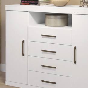A Cômoda Master possui design contemporâneo e dinâmico, que pode deixar o cômodo bem mais moderno e funcional. Sabe como? Graças aos detalhes que fazem toda a diferença! Sim, essa cômoda para quarto possui 2 portas sendo uma em cada extremidade, 4 gavetas com corrediça metálicas, amplo espaço interno e nicho central com passa fios para aparelhos eletrônicos, itens decorativos ou objetos pessoais. Ah, e fabricado em MDP com acabamento envernizado e puxadores em ABS, para conferir durabilidade e resistência. Nossa, com tantos benefícios assim fica difícil recusar né?