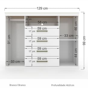 Largura: 129 cm.
