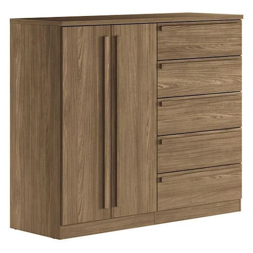 Comoda 2 portas 5 gavetas Malaga Gold Jatobá: A cômoda Málaga Gold da Santos Andirá é um móvel elegante e muito funcional. Ela oferece ótimo espaço pra organizar roupas e ainda conta com um compartimento interno ideal pra pendurar camisas, vestidos e jaquetas. O acabamento moderno e sofisticado valoriza o ambiente, garantindo um visual bonito e um móvel resistente, feito pra durar.