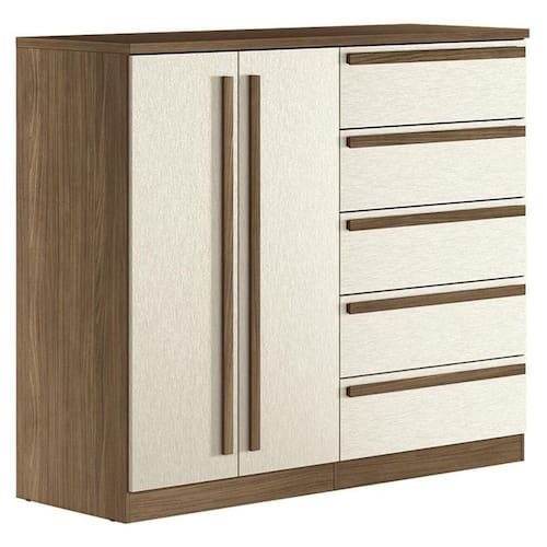 Comoda 2 portas 5 gavetas Malaga Gold Jatobá Areia: A cômoda Málaga Gold da Santos Andirá é um móvel elegante e muito funcional. Ela oferece ótimo espaço pra organizar roupas e ainda conta com um compartimento interno ideal pra pendurar camisas, vestidos e jaquetas. O acabamento moderno e sofisticado valoriza o ambiente, garantindo um visual bonito e um móvel resistente, feito pra durar.